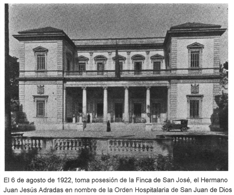 El 6 de agosto de 1922, toma posesión de la Finca de San José, el Hermano Juan Jesús Adradas en nombre de la Orden Hospitalaria de San Juan de Dios, comprada a D. Enrique Junqueras de Oriola, el 4 de julio de 1922.